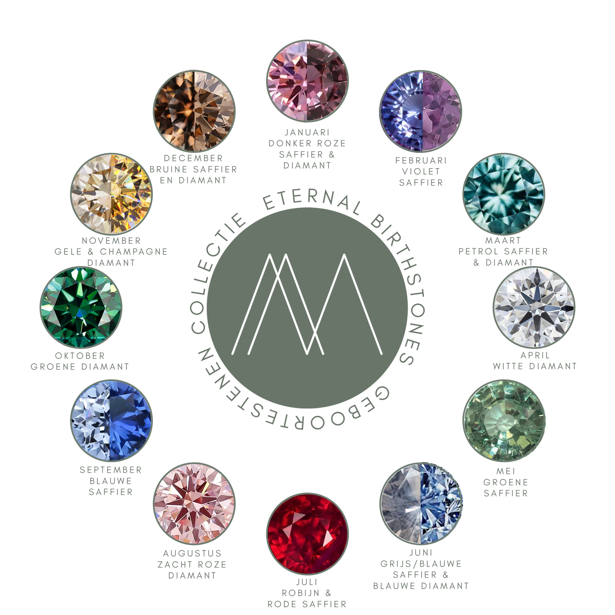 Daarnaast kunnen de ontwerpen uit de Signature Collectie ook worden uitgevoerd met edelstenen uit onze Eternal Birthstones collectie, voor wie zijn ring een extra persoonlijke betekenis wil geven.